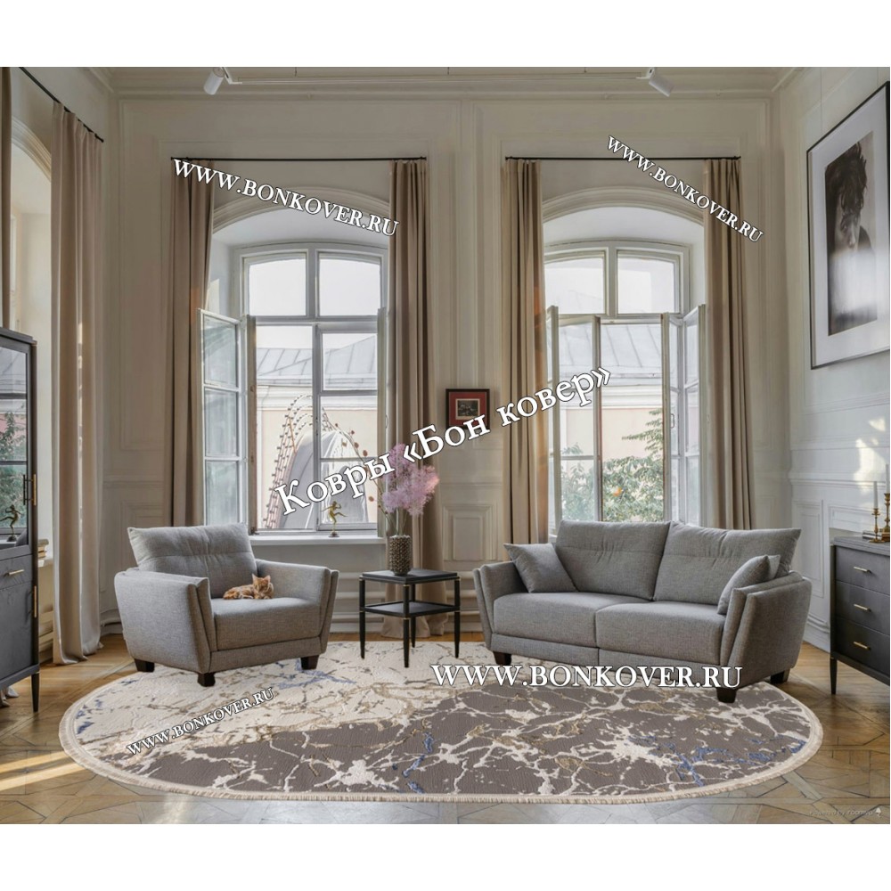Турецкий Ковер Для Гостиной Абстракция Дизайн 03 Овал станет гармоничным дополнением интерьера, оформленного в современном или классическом стиле. Мягкое, но прочное, ковровое покрытие обеспечивает тепло- и шумоизоляцию, отличается длительным периодом эксплуатации, пожаробезопасностью, экологичностью и высокой износостойкостью, является отличной гарантией от повышенной влажности в комнате и утеплителем для холодного пола. Благодаря качеству материалов, ковер не деформируется, сохраняет первоначальный вид под тяжестью предметов мебели. За его поверхностью легко ухаживать.