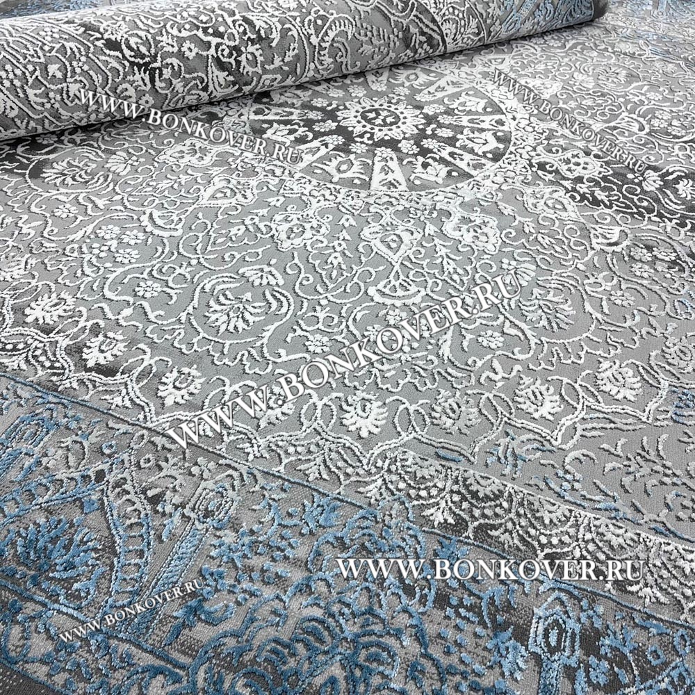 Шикарный Турецкий Ковер Для Гостиной Дизайн 31 Синий с Серым Прямоугольный наполняет интерьер квартиры теплом и уютом, гармонично сочетает в себе изящество и стиль. Он создан из экологически чистого сырья, комфортный и долговечный.