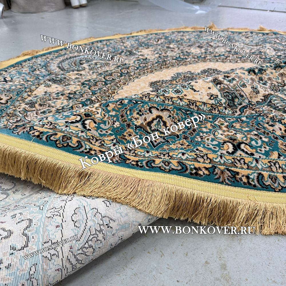Восточный Ковер Для Гостиной Медальон Дизайн 28747 круг станет привлекательным дополнением интерьера, оформленного в современном или классическом стиле. Мягкое, но прочное, ковровое изделие обеспечивает тепло- и шумоизоляцию, отличается длительным сроком эксплуатации, надежностью, экологичностью и высокой износостойкостью, является отличной защитой от повышенной влажности в помещении и утеплителем для холодного пола. Благодаря качеству материалов, ковер не деформируется, сохраняет форму под тяжестью предметов мебели. За его поверхностью легко ухаживать.